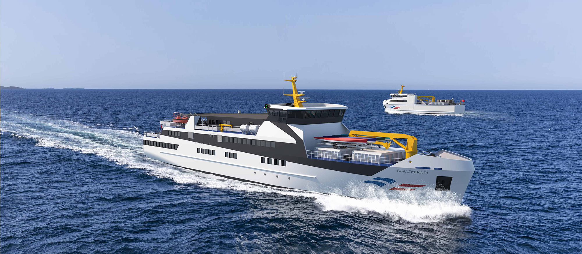 The Isles of Scilly Steamship Group and Piriou will commence detailed design work with the intention of signing contracts in October 2023 for the new Scillonian IV passenger ship and a new cargo vessel to replace the current Gry Maritha.